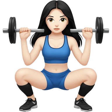 Pale girl with long black hair squatting weight emoji | AI Emoji Generator