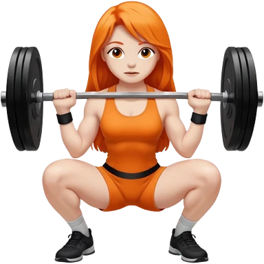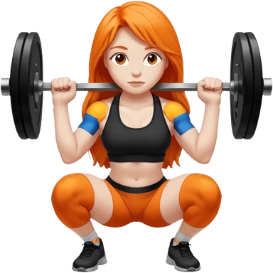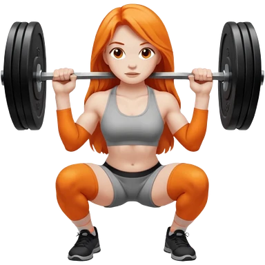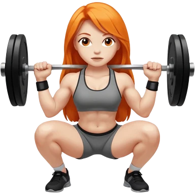 Pale girl with long orange hair squatting weight from side emoji | AI Emoji Generator