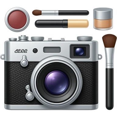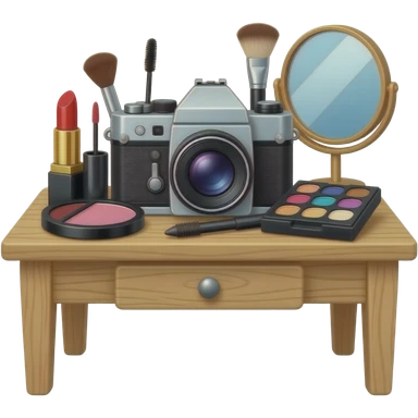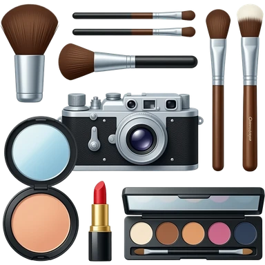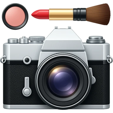 composition of make-up accessories with photo-camera Mamiya RB67 emoji