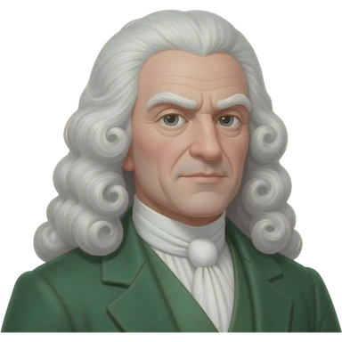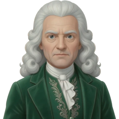 elderly nobleman with long white hair, a large white curled wig flowing to the sides, thick white eyebrows, pale skin, a confident slightly stern expression, wearing an elegant green coat emoji