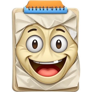 A crumpled notepad with a silly drawing on it emoji