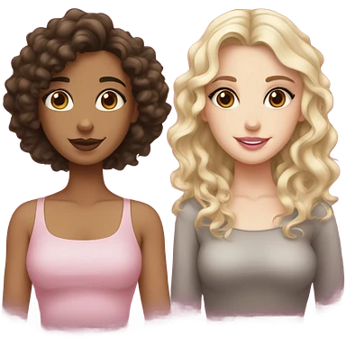 Two separate emojis, one a beige girl with wavy brunette hair and brown eyes, one a curly black brownish haired girl with pale skin and long lashes alongside big brown eyes and pink lips emoji