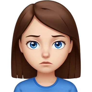 Girl with blue eyes straight brown hair with an annoyed face emoji