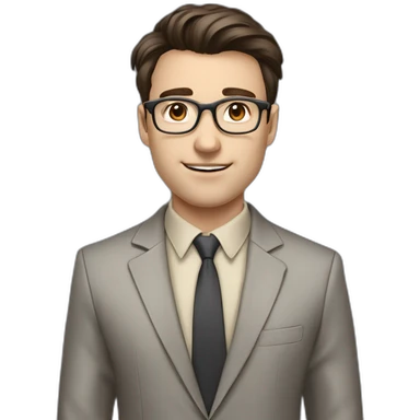 Pale skinned fit man with dark brown hair in gray jacket, beige office shirt, brown tie, brown pants and vintage glasses Writing text on the flipchart emoji | AI Emoji Generator