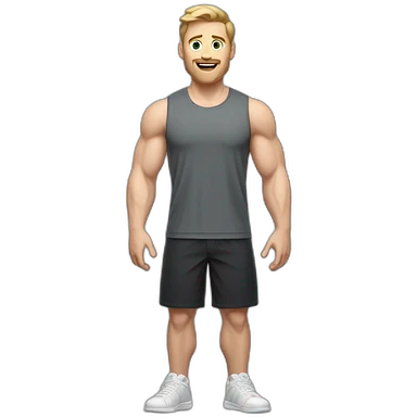 Pale skinned Fit Man With the biceps and light brown hair in black shirt, gray sports shorts and white Sneakers Writing text on the flipchart emoji | AI Emoji Generator