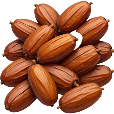 two or three dates, rich glossy brown, wrinkled, plump, natural variation, arranged casually, no plate, packaging, or faces, clean 3D, soft shadows, emoji scale emoji
