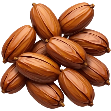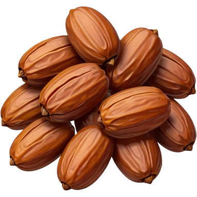 small cluster of dates, glossy brown skin, slightly wrinkled, plump, color variation from amber to mahogany, no plate, packaging, garnish, or faces, clean 3D, soft shadows, emoji scale emoji