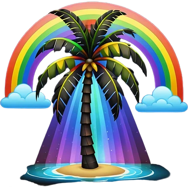 Palmera de negro con un arcoiris de fondo en la noche emoji | AI Emoji Generator
