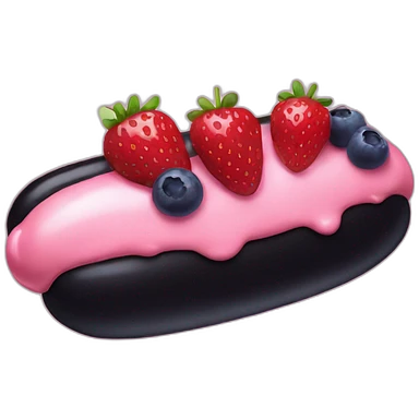 black hotdog with strawberrys, blueberrys and pink cream emoji