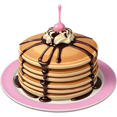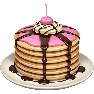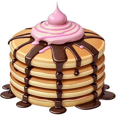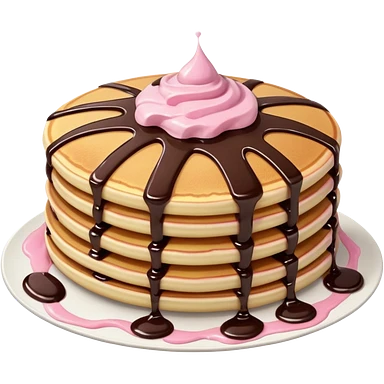 Pancakes with fruits whipped cream and pink raspberry sauce and syrup emoji