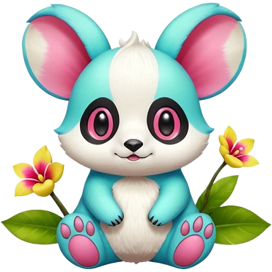 Exotic Colorful Tropical Pancham-Minccino-Petilil-Minun-Fakémon-Digimon-fusion-creature emoji