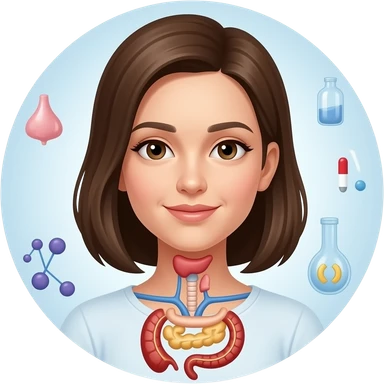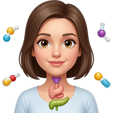 girl with visible pituitary gland, thyroid gland, pancreas and hormones around her emoji