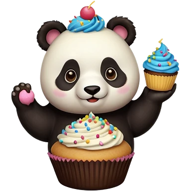 panda holding single cupcake emoji