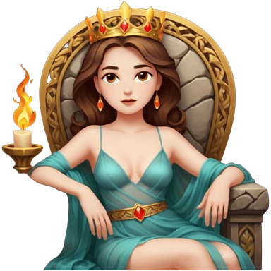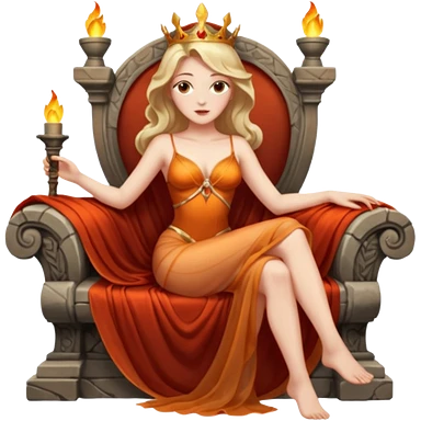 Woman reclining on a stone throne, sheer fabric, torchlight, dangerous seduction emoji