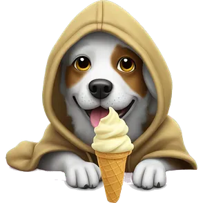 Girl with brown and blonde hair with a Bernese mountain dog emoji
