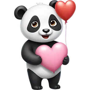 a red panda, holding a big red heart on his hands, giving a kiss emoji