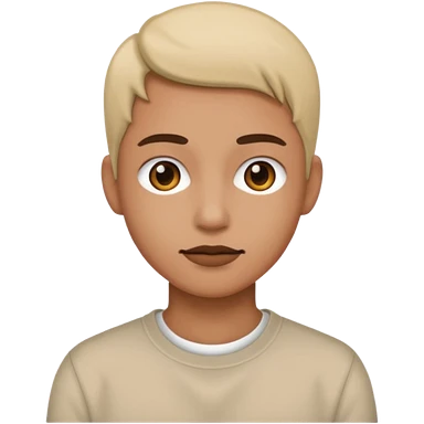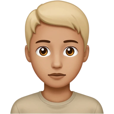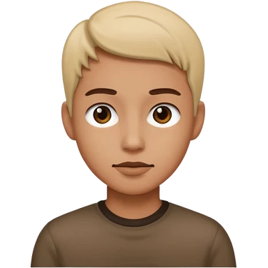 emoji estilo iOS de uma menina parda, cabelo cacheado curto preto dividido ao meio, olhos castanhos, expressão neutra emoji