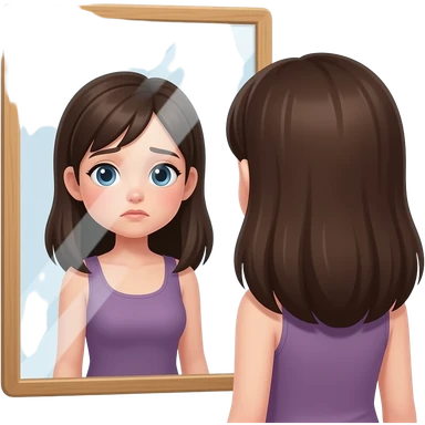 una chica triste viendose en un espejo ,su propio reflejo se cubre el cuerpo y hay en poster que muestra a una chica feliz con un buen cuerpo emoji