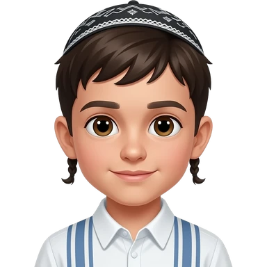 Payot style hair Jewish boy with yamaka brown eyes emoji