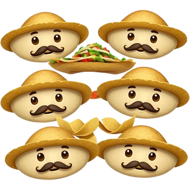 a flock of flying tortillo with a mustache, no handlebar corners on the mustache emoji