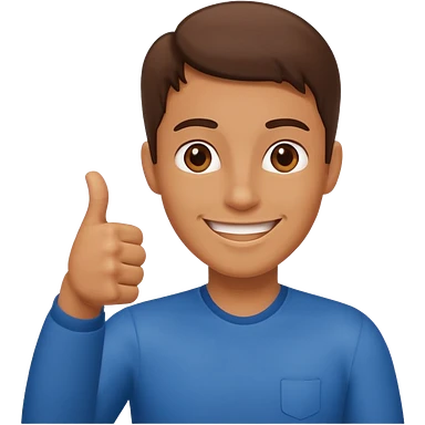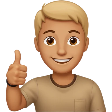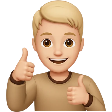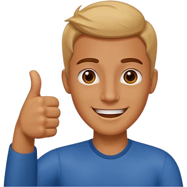Buat gambar aw shucks yg sedang senang dan berikan jempol emoji