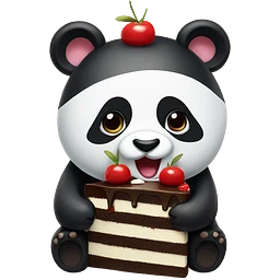 Panda eating ice cream and eating chocolate cake with chocolate milk emoji
