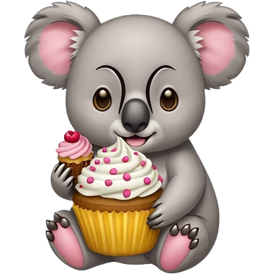 Panda eating ice cream armed with cupcakes mask made of steel emoji