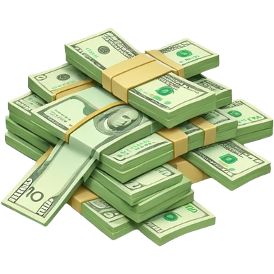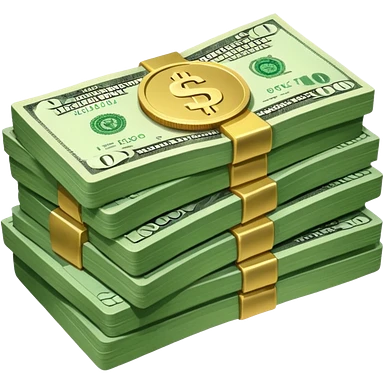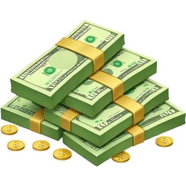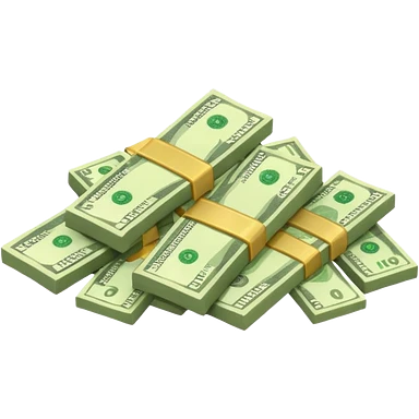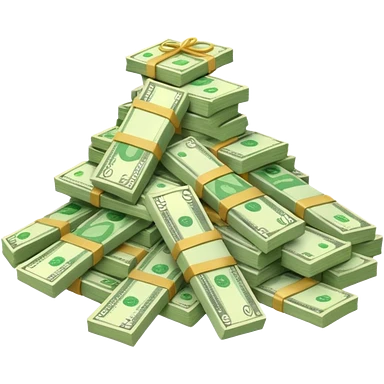 stack of money emoji, cute emoji style, mobile game emoji, soft 3D look, smooth gradients, white outline sticker style, no background emoji