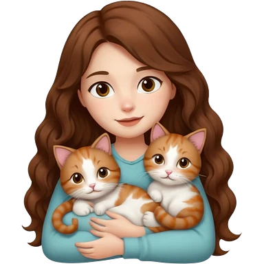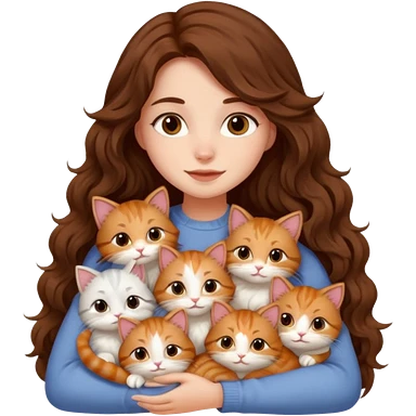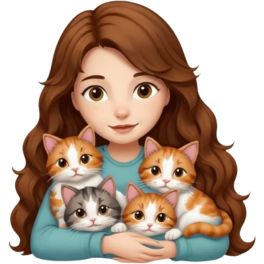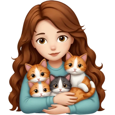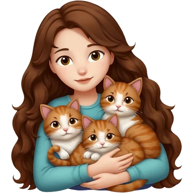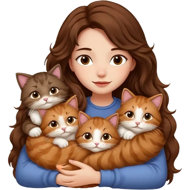 pretty girl with long wavy brown hair snuggling 6 cats emoji
