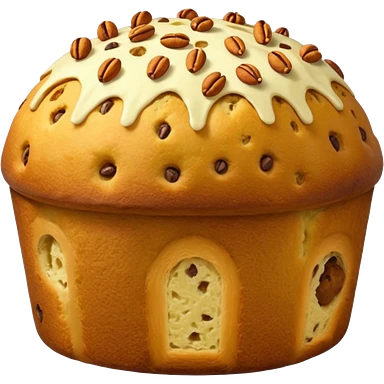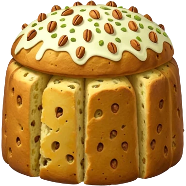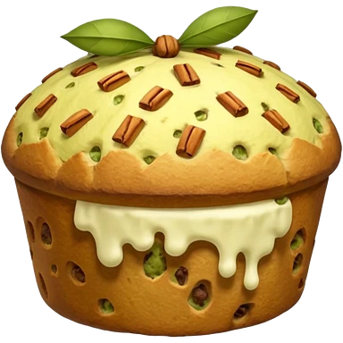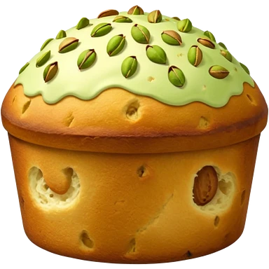 panettone con glassa al pistacchio che scende lungo i bordi e pistacchi come decorazione emoji
