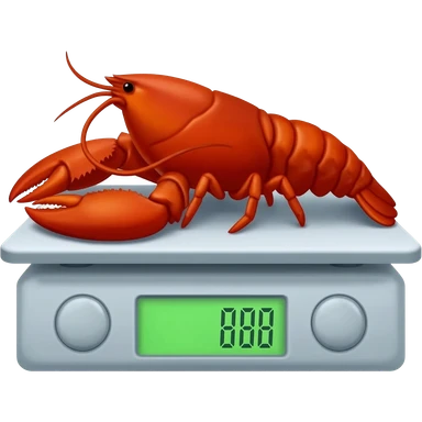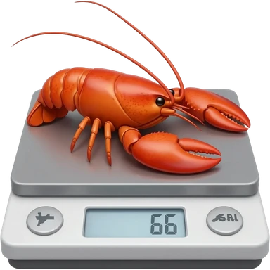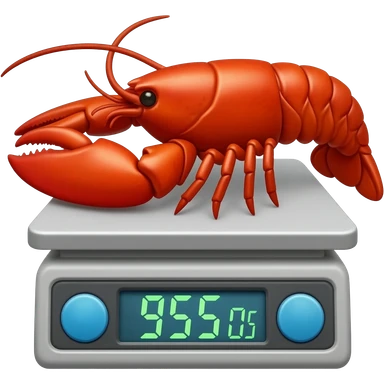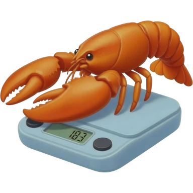 langosta sobre una balanza digital marcando el peso y el costo de la langosta emoji