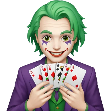 Faça um emoji bem real do Jocker com cartas na mao emoji