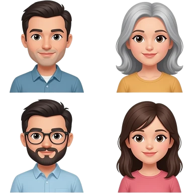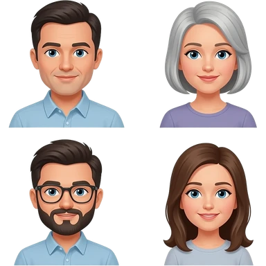 Papa con poco pelo oscuro, Mama delgada con canas, hijo con barba y lentes, hija hermosa emoji