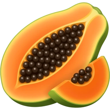 papaya with seeds visible, vibrant orange and green emoji