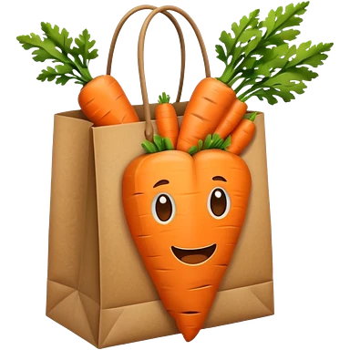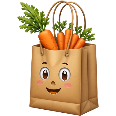 paper shopping bag with carrot inside. Transparent background emoji