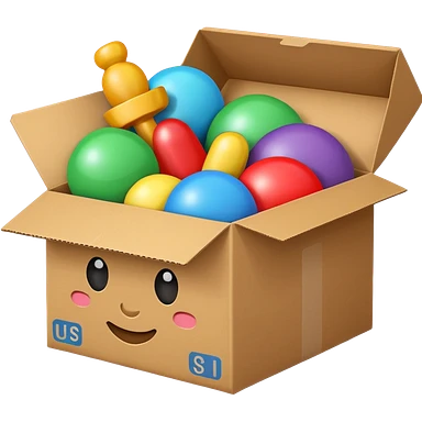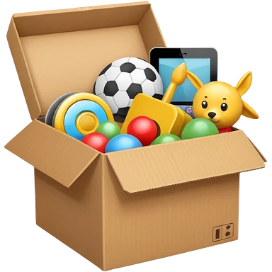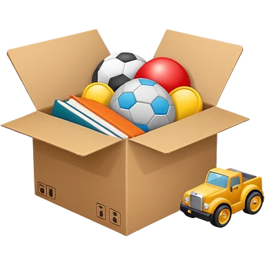 cardboard box with toys, realistic emoji