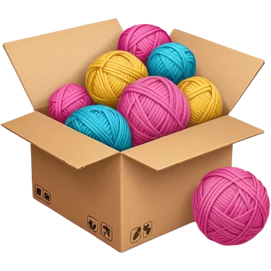 paper box with toys, ball of yarn, pink emoji | AI Emoji Generator
