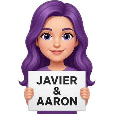 girl with long purple hair with a JAVIER & AARON sign emoji