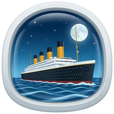 the ship Titanic hovers in the night sky above a pool of water emoji