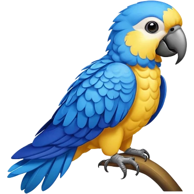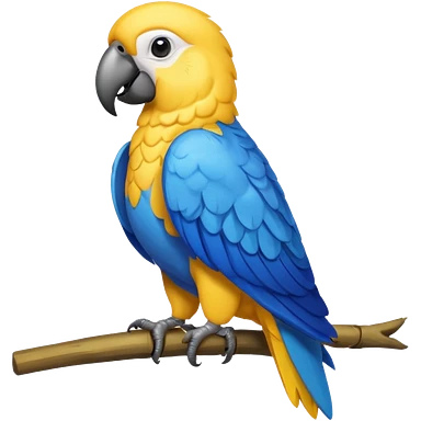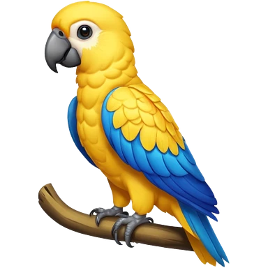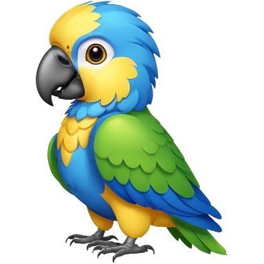 Pappagallo giallo e blu con il giallo sul petto le ali e la coda blu e la fronte poco poco verde emoji | AI Emoji Generator