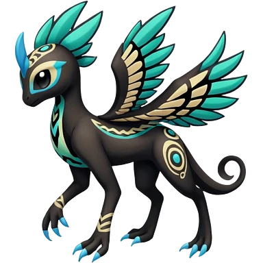 Meloetta-Venom-Zekrom-Salandit-fusion, full body, tribal markings emoji
