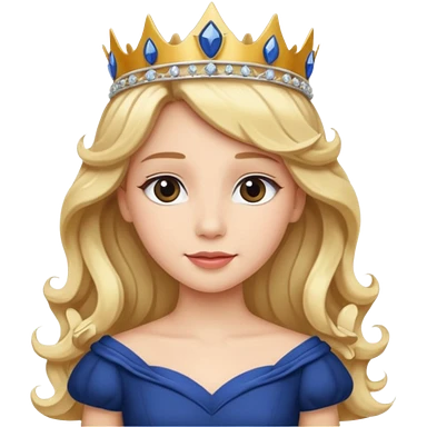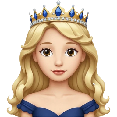 Princess in Navy Dress with Tiara, long wavy Blonde Hair emoji