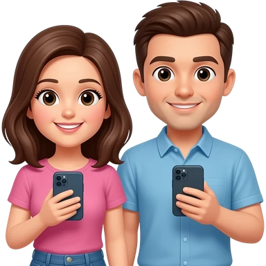 pareja hombre con barba y mujer rubia en internet charlando en streaming emoji