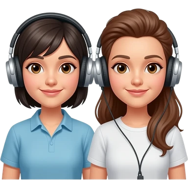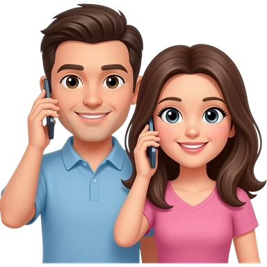 pareja hombre con barba y mujer rubia pelo largo charlando en streaming con auriculares emoji