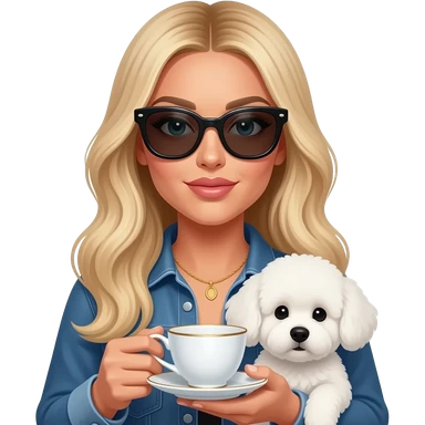 paris hilton holding a teacup white puppy and the puppy is wearing sunglasses emoji