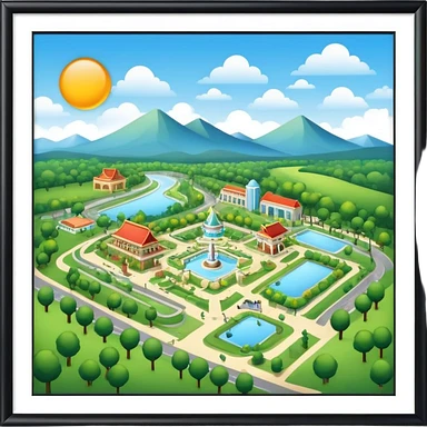 An icon featuring a sleek scooter parked on a smooth path in a park. The background showcases winding pathways, tall trees, and bright greenery with the sun shining through. The scooter stands ready for a ride, capturing the freedom and joy of scootering outdoors. Transparent background emoji