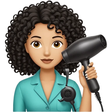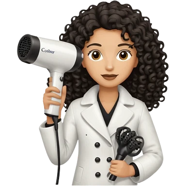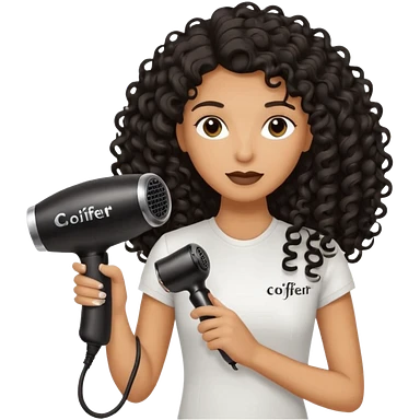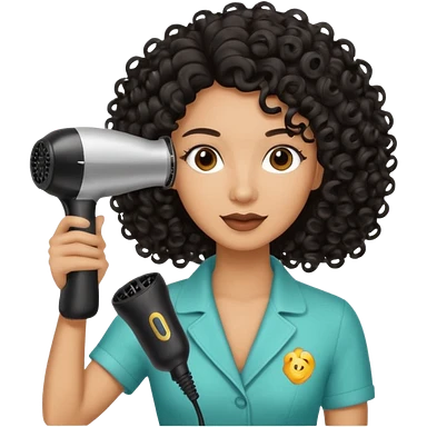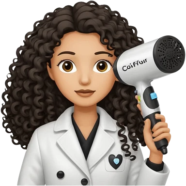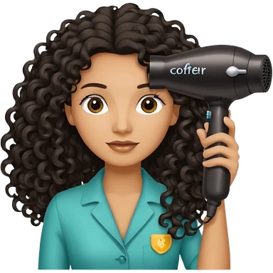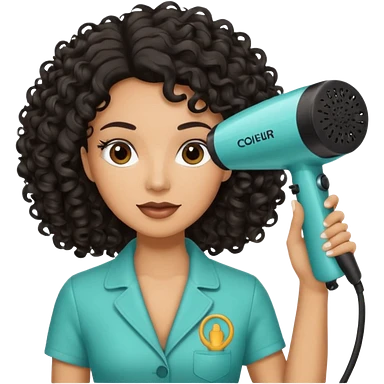 Parrucchiera con il phon in mano e la scritta coiffeur assunta capelli neri e ricci lunghi emoji