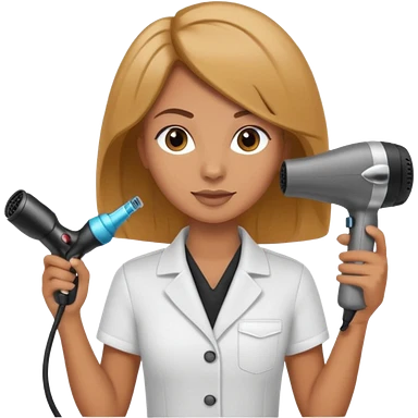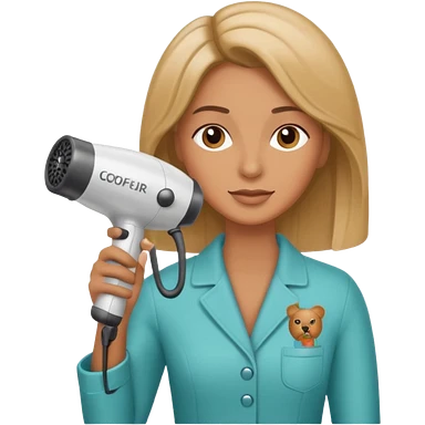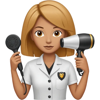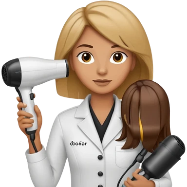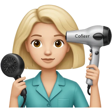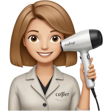 Parrucchiera con il phon in mano e la scrittura coiffeur assunta emoji | AI Emoji Generator