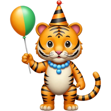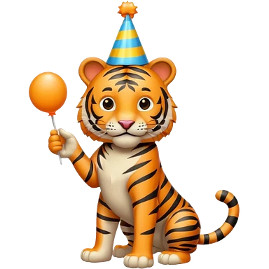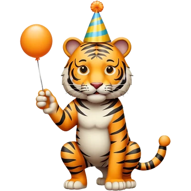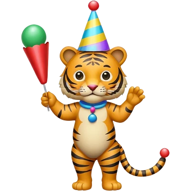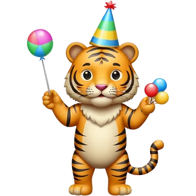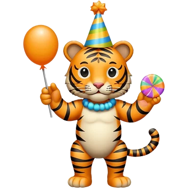 Party Tiger with a party hat and a party popper full body emoji