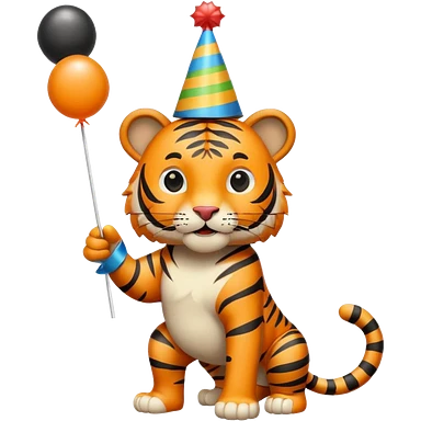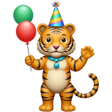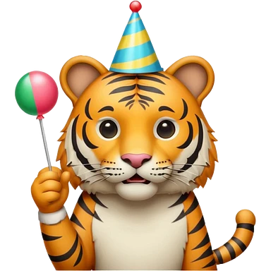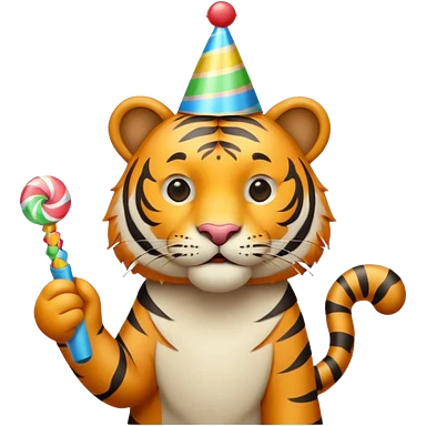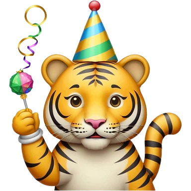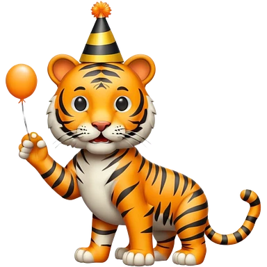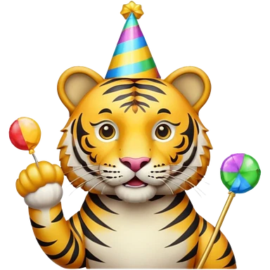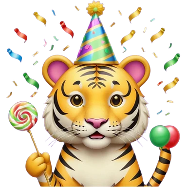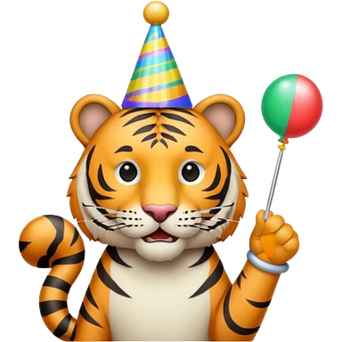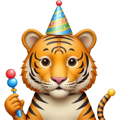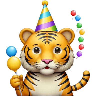 Party Tiger with a party hat and a party popper emoji